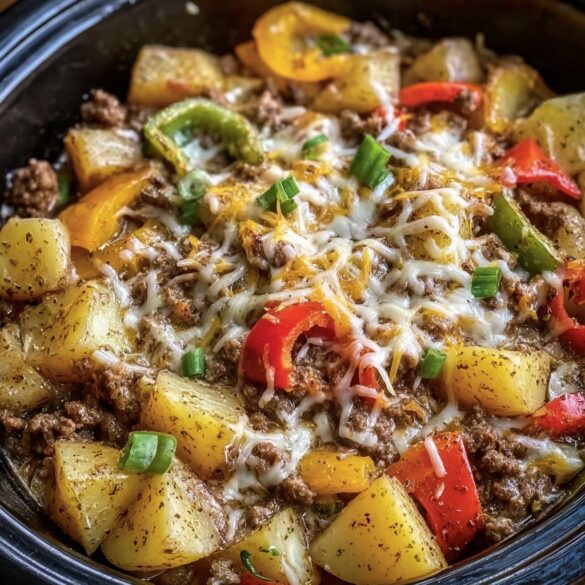 If you love the bold, savory flavors of a Philly cheesesteak and the cozy comfort of a slow-cooked casserole, this Crockpot Cheesesteak Potato Casserole is about to become a new favorite. Tender potatoes, seasoned beef, sweet onions, and bell peppers all slow-cook together in a rich, beefy broth—then get finished with a generous layer of melty cheese. It’s hands-off, hearty, and perfect for busy days when you want dinner to basically cook itself. One scoop and you’ll see why this dish disappears fast.